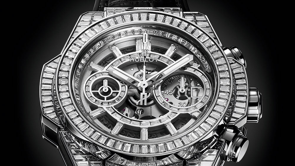 Hublot has added to its high jewellery collection with three watches that boast 300 baguette-cut diamonds a piece.